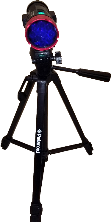 This light also has its internal reflector coated in flat white paint so the beam is a much broader, diffuse beam than the other 365nm 9 Watt lights.  This reduces the distance but makes the light more suitable for analyzing something like an art object where you want diffuse lighting without hotspots.
